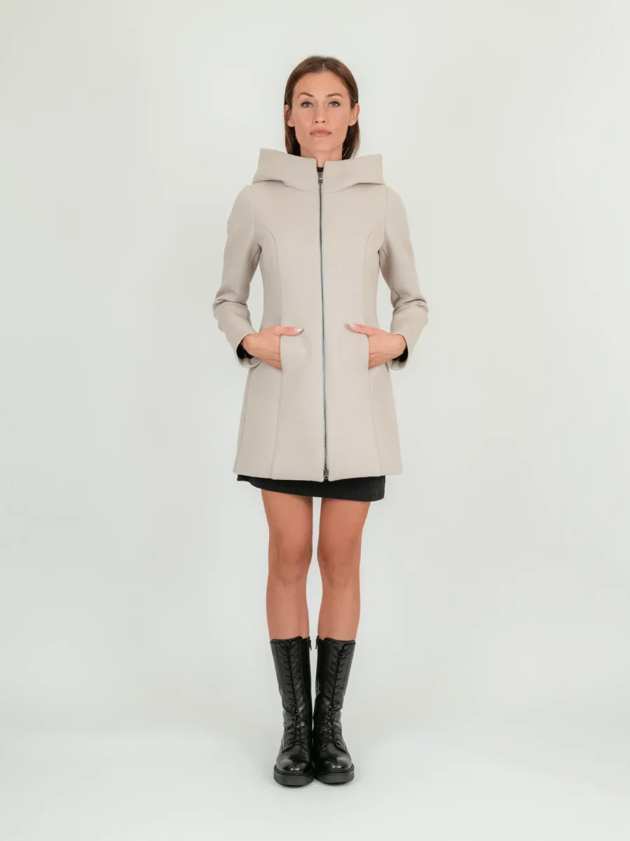 CAPPOTTINO TECNICO CORTO BEIGE CON CAPPUCCIO