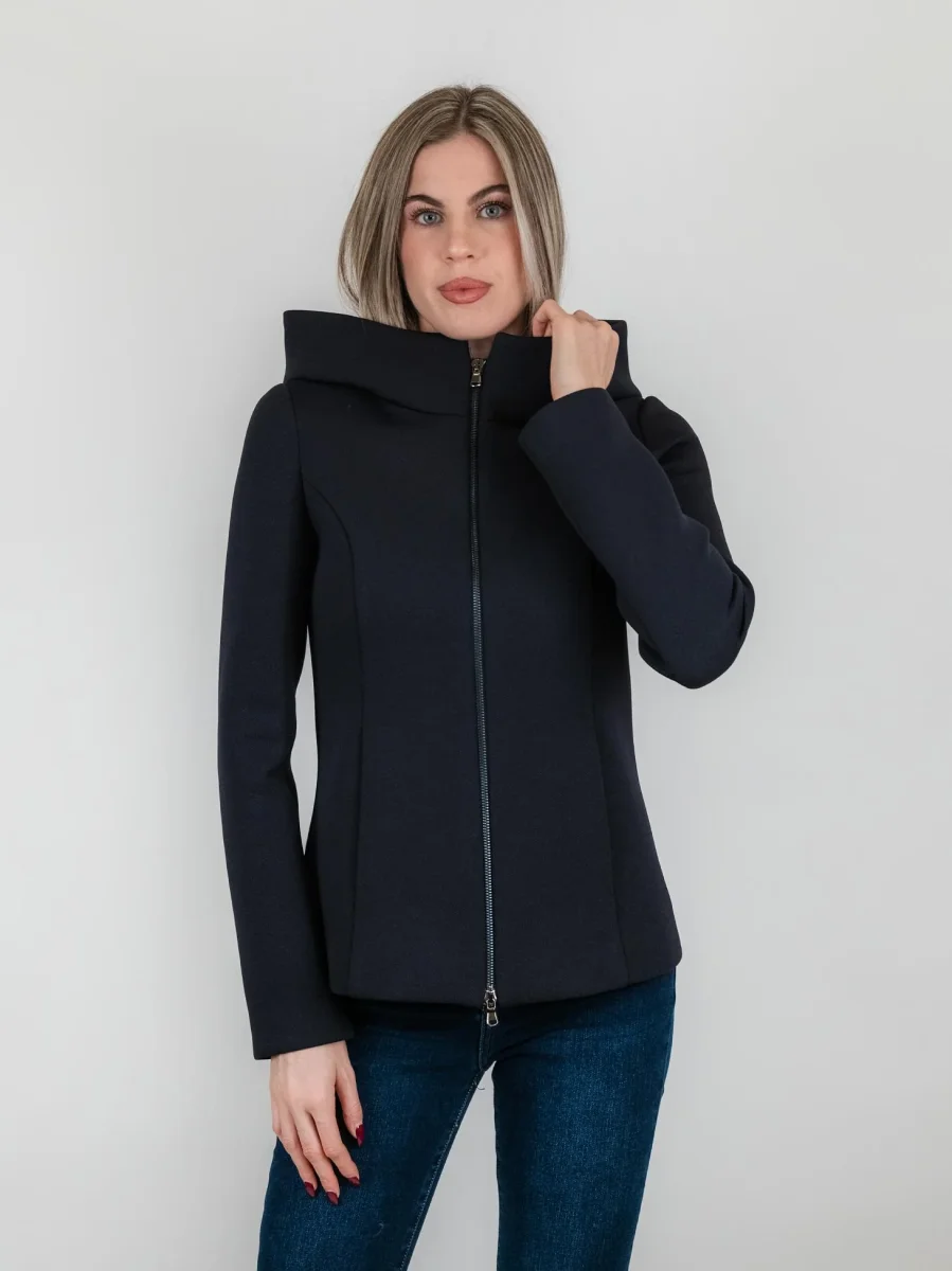 CAPPOTTINO TECNICO CORTO BLU CON CAPPUCCIO