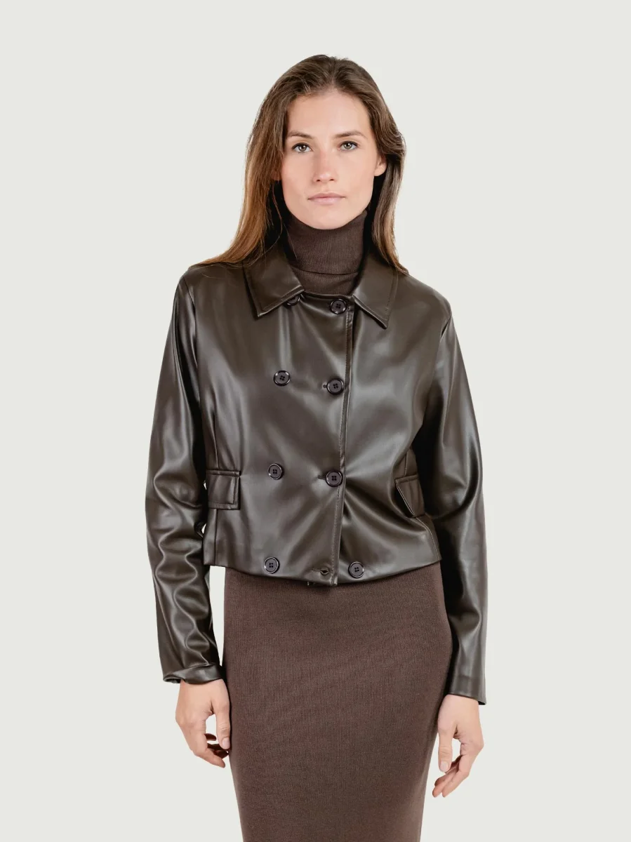 GIACCA CROPPED DOPPIOPETTO IN ECOPELLE NERA