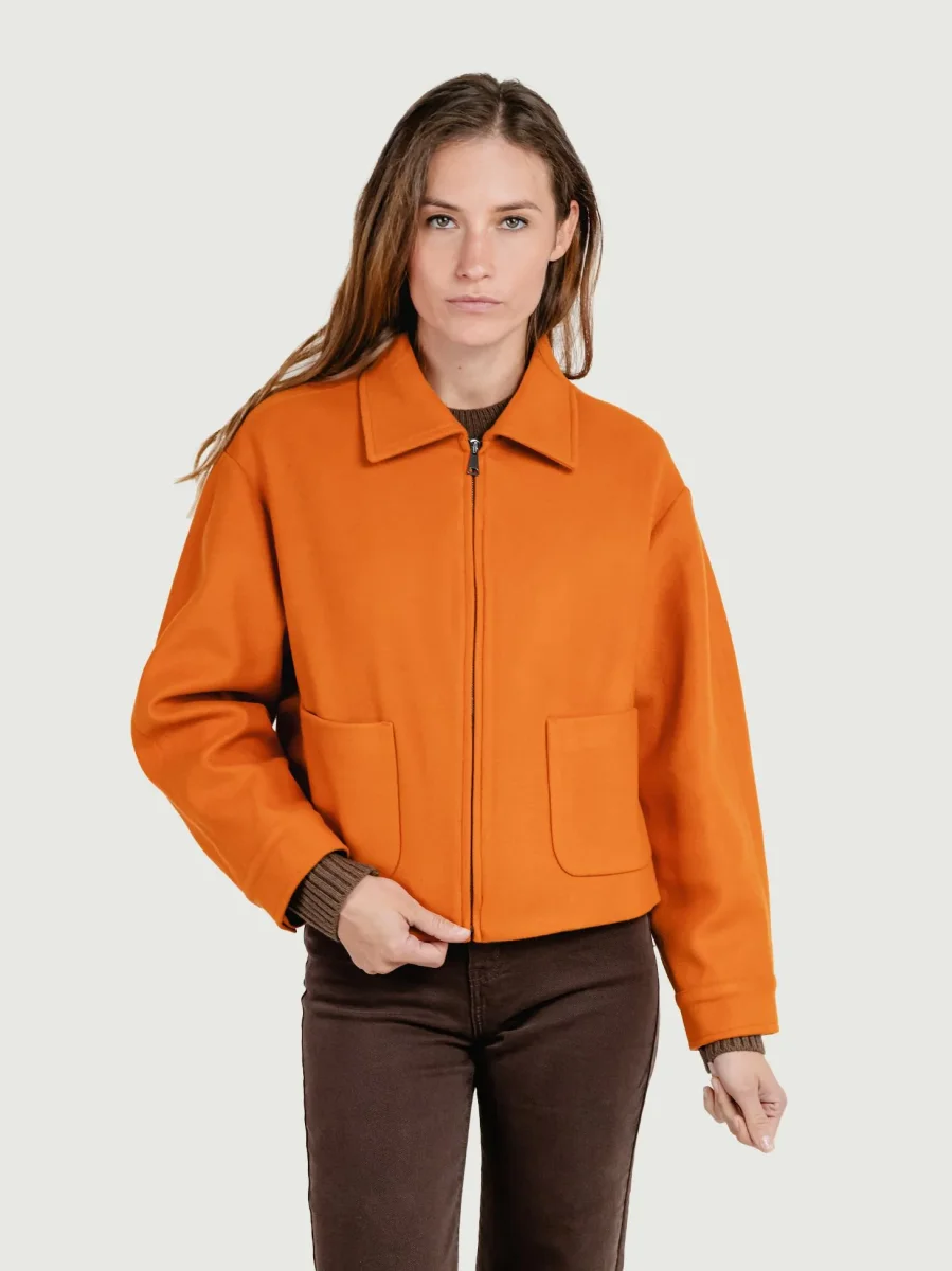 GIACCA CROPPED IN MISTO LANA ARANCIO