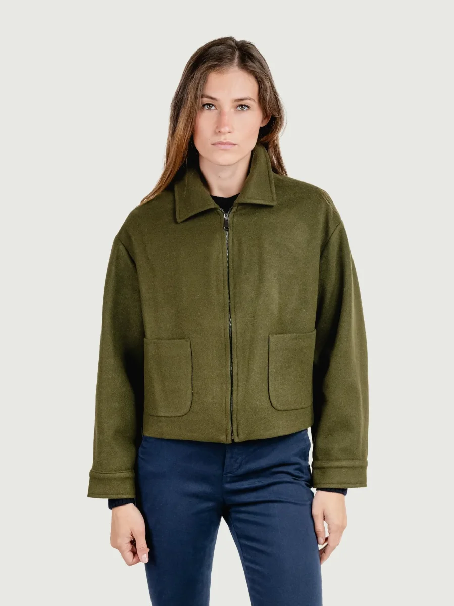 GIACCA CROPPED IN MISTO LANA VERDE BOSCO