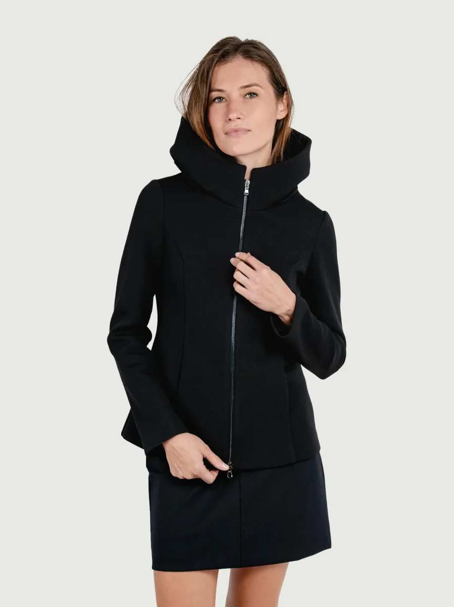 GIUBBINO TECNICO CORTO NERO CON CAPPUCCIO