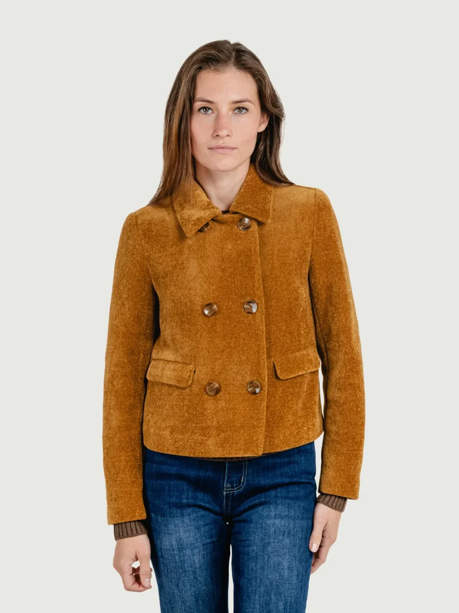 GIACCA DOPPIOPETTO IN VELLUTO OCRA