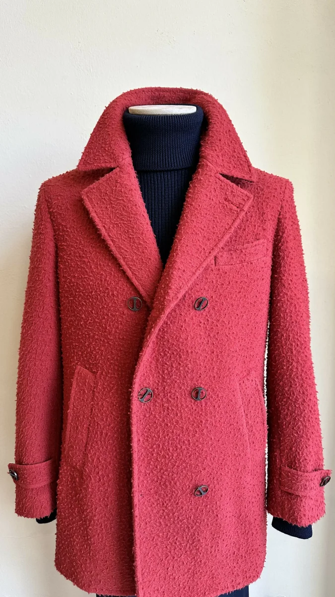 CABAN CORTO DOPPIOPETTO IN ECO-MONTONE E NOCCIOLA