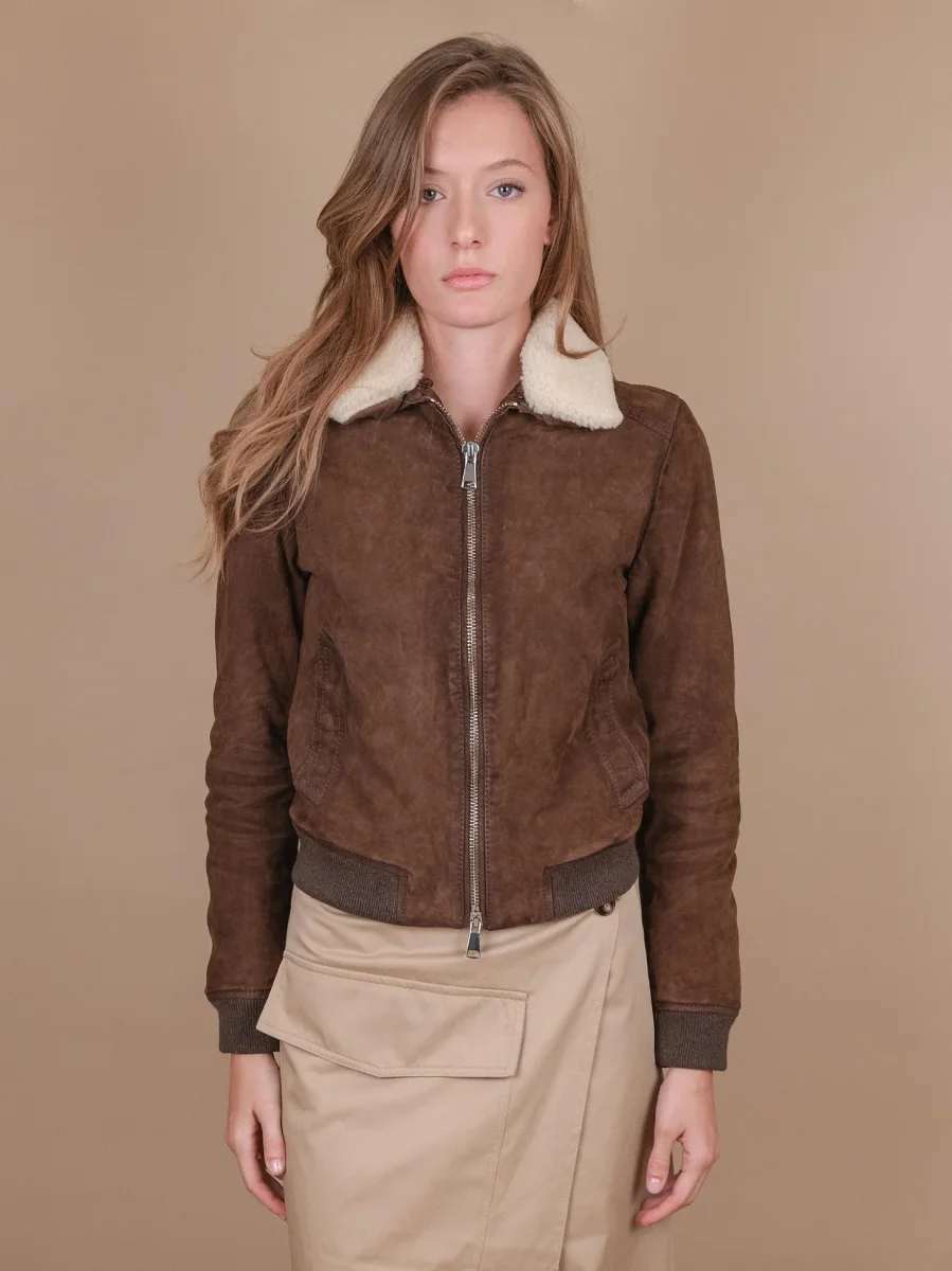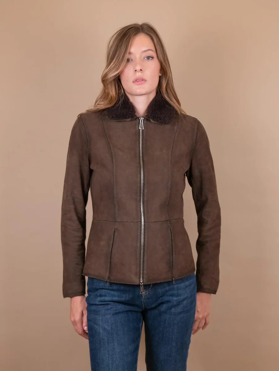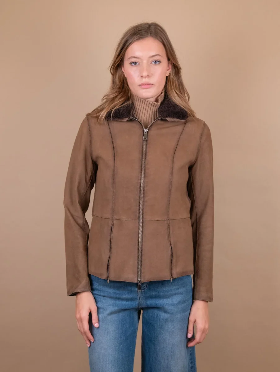 GIUBBOTTO “DIANA” IN CAMOSCIO FODERATO IN MONTONE MARRONE