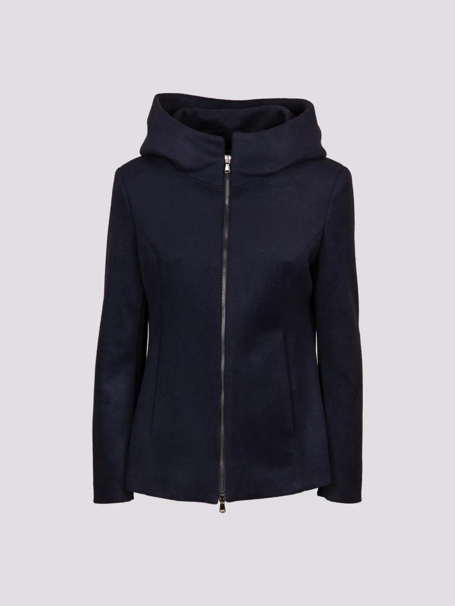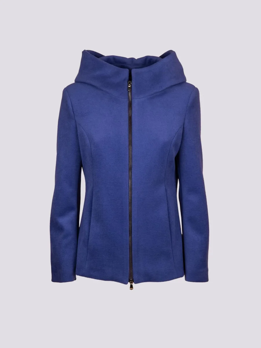 GIACCA TECNICA CON CAPPUCCIO E MAXI COLLO BLU