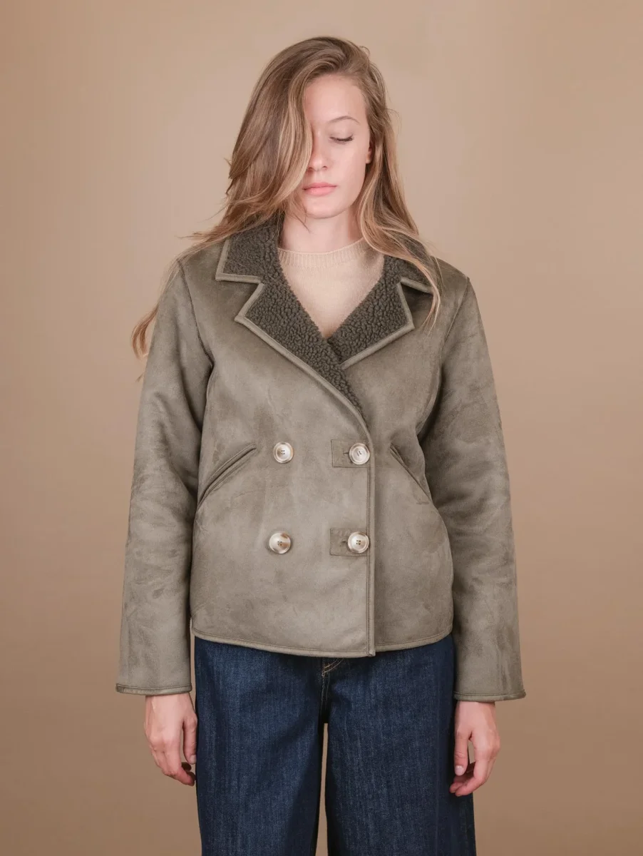CABAN CORTO DOPPIOPETTO IN ECO-MONTONE VERDE