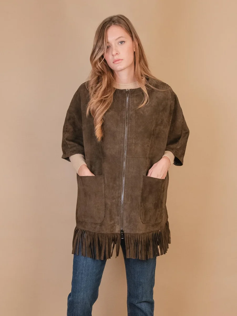 GIUBBOTTO “JUNGLE” IN CAMOSCIO CON ZIP E COLLO IN MONTONE NOCE