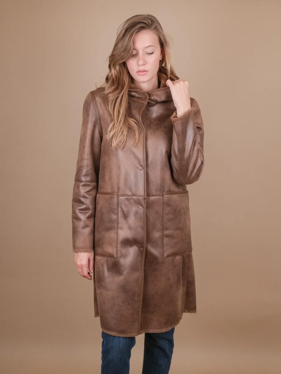 ECO-MONTONE REVERSIBILE E ECO-PELLICCIA MARRONE