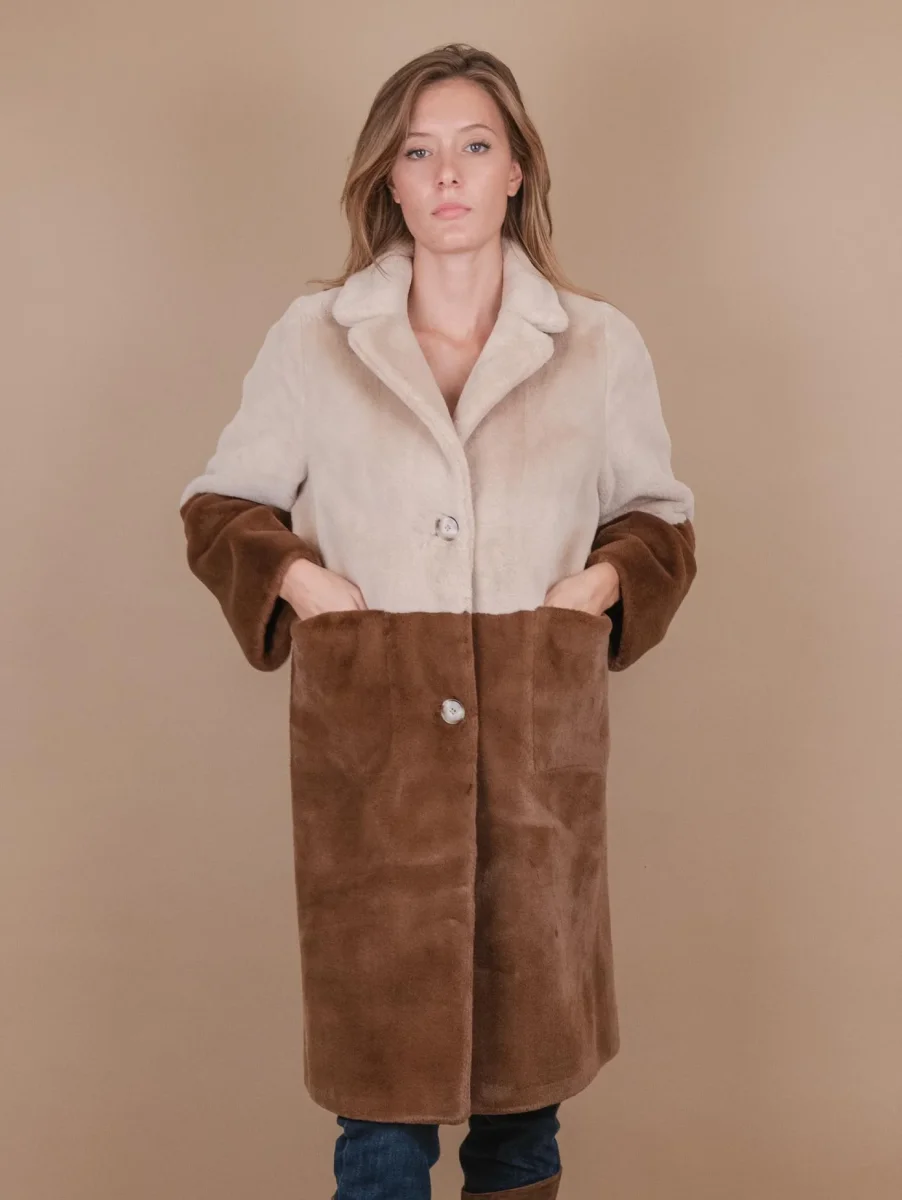 CAPPOTTO IN ECO-MONTONE E ECO-PELLICCIA REVERSIBILE BICOLORE