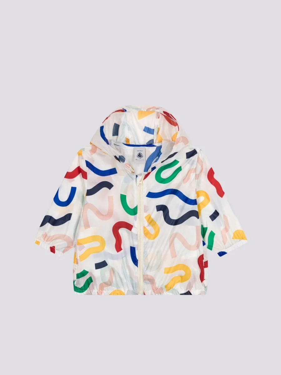 Giacca a vento con stampa color block, fodera millerighe bebè