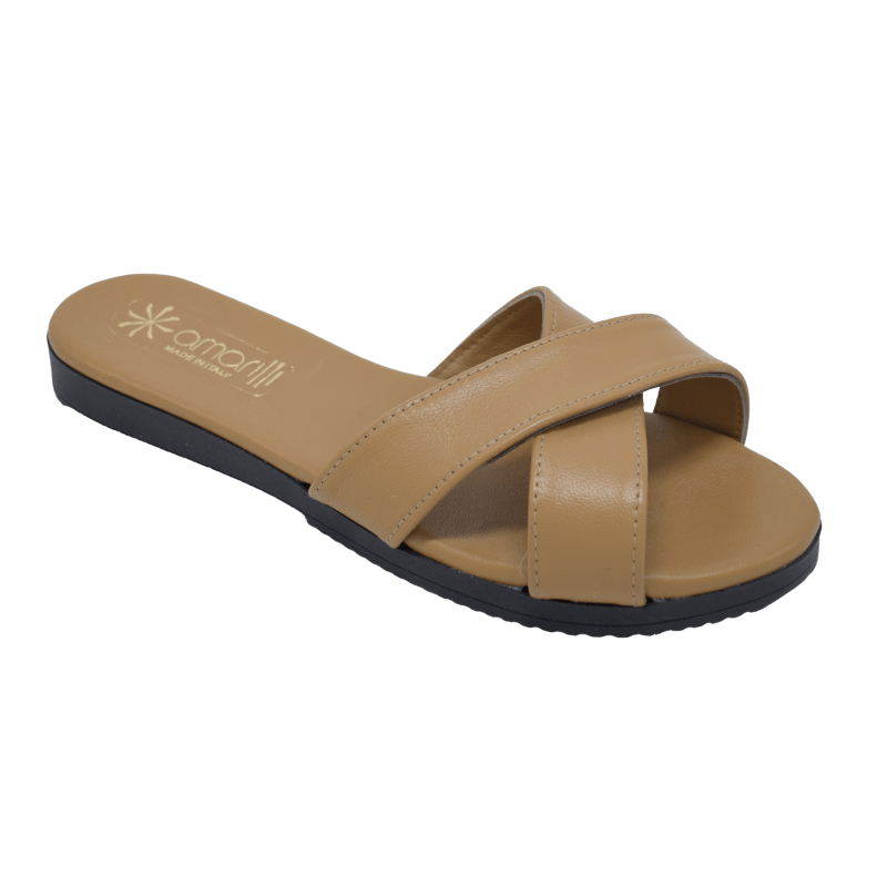 Barbara: Ciabatte per uscire a fasce incrociate in Pelle Camoscino