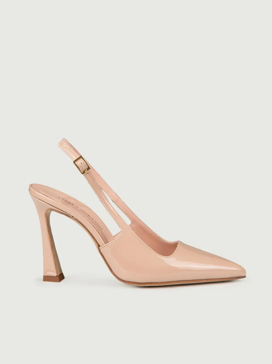 DÉCOLLETÉ A PUNTA IN VERNICE NERA CON TACCO