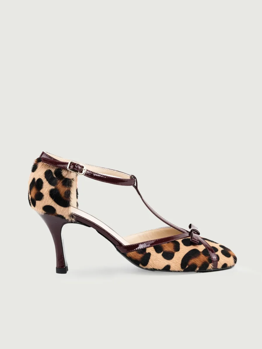DÉCOLLETÉ T-BAR IN CAVALLINO MACULATO