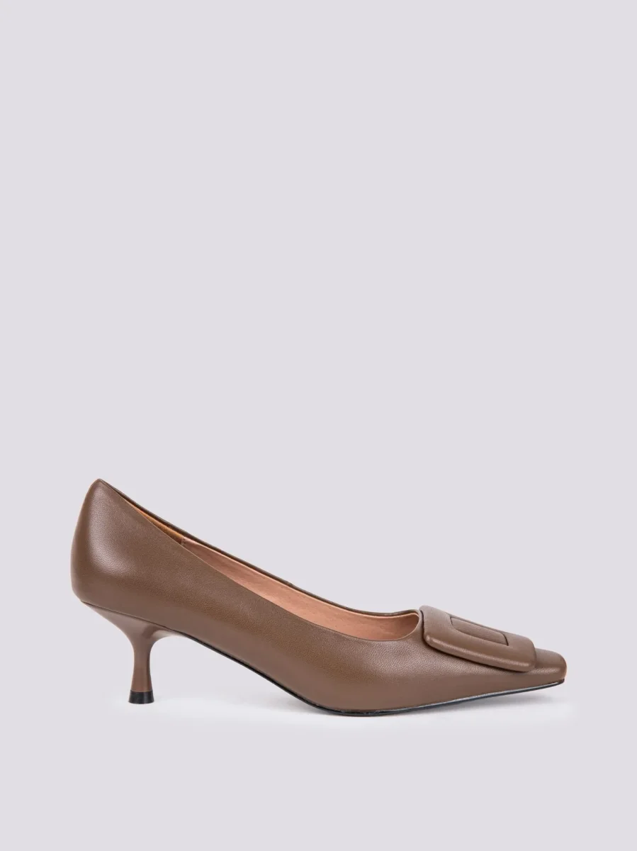 DECOLLETE CON APPLICAZIONE FRONTALE IN PELLE MARRONE