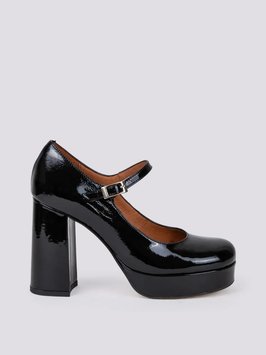 DECOLLETE CON CINTURINO E PLATEAU IN VERNICE NERA