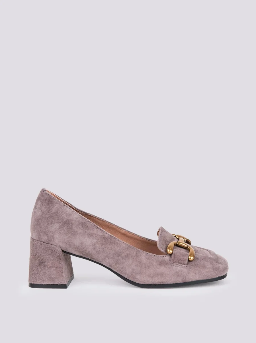 DECOLLETE CON TACCO LARGO E PUNTA SQUADRATA IN CAMOSCIO GRIGIO