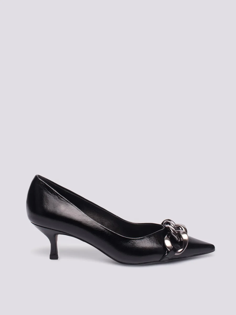 DECOLLETE CON APPLICAZIONE FRONTALE IN PELLE NERA