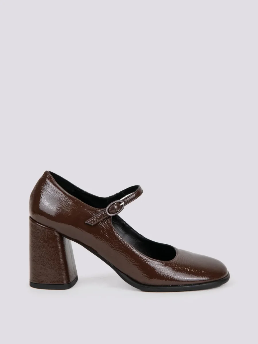 DECOLLETE CON CINTURINO IN NAPLAK MARRONE
