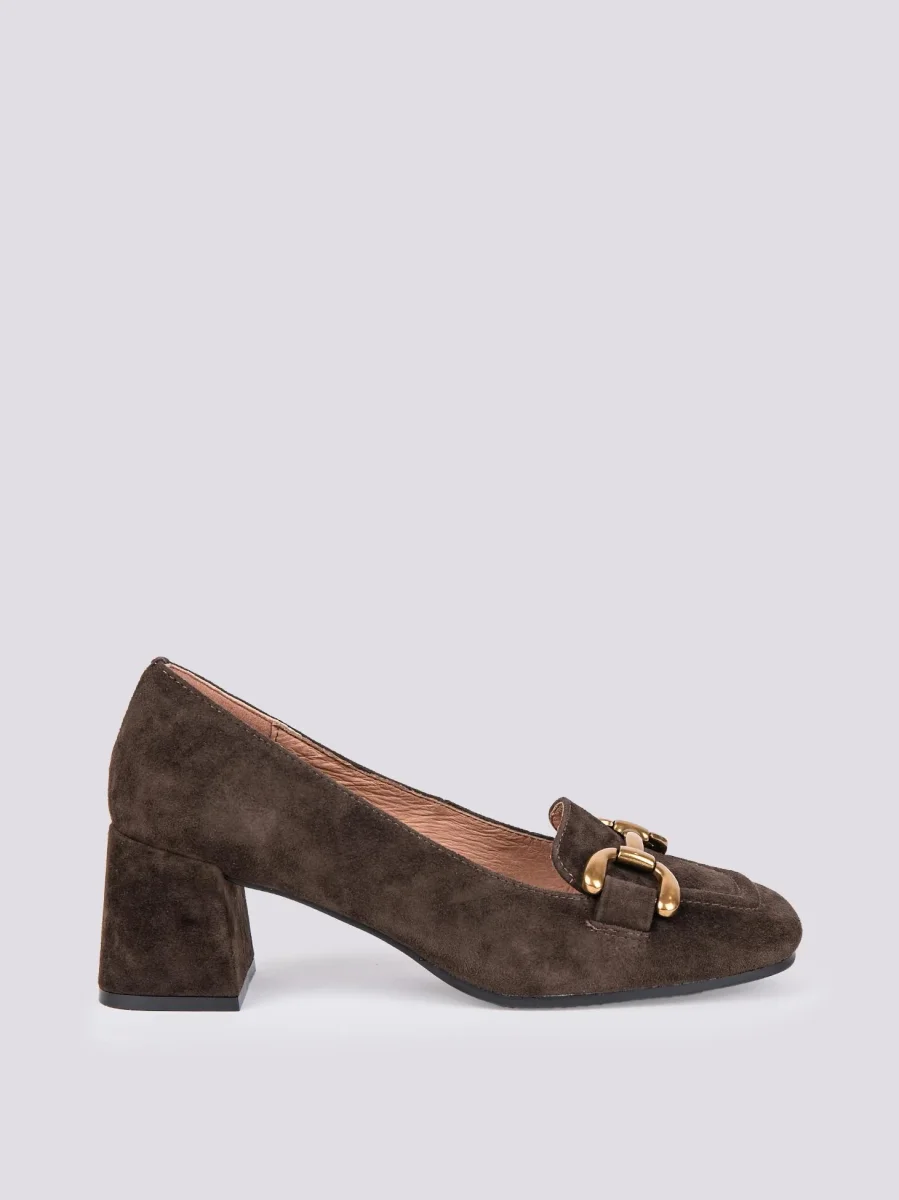 DECOLLETE CON TACCO LARGO E PUNTA SQUADRATA IN CAMOSCIO MARRONE