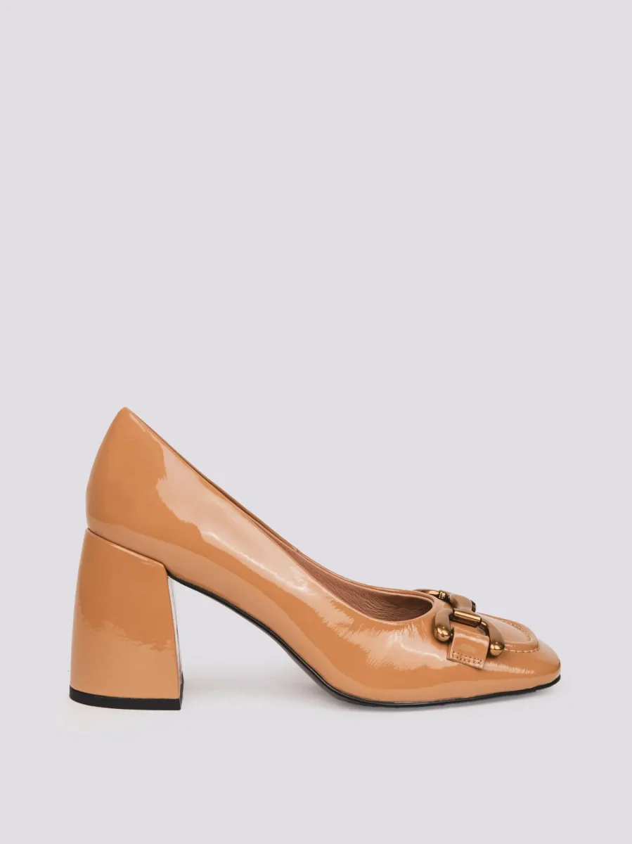 DECOLLETE CON TACCO SPESSO E MORSETTO FRONTALE IN VERNICE BEIGE