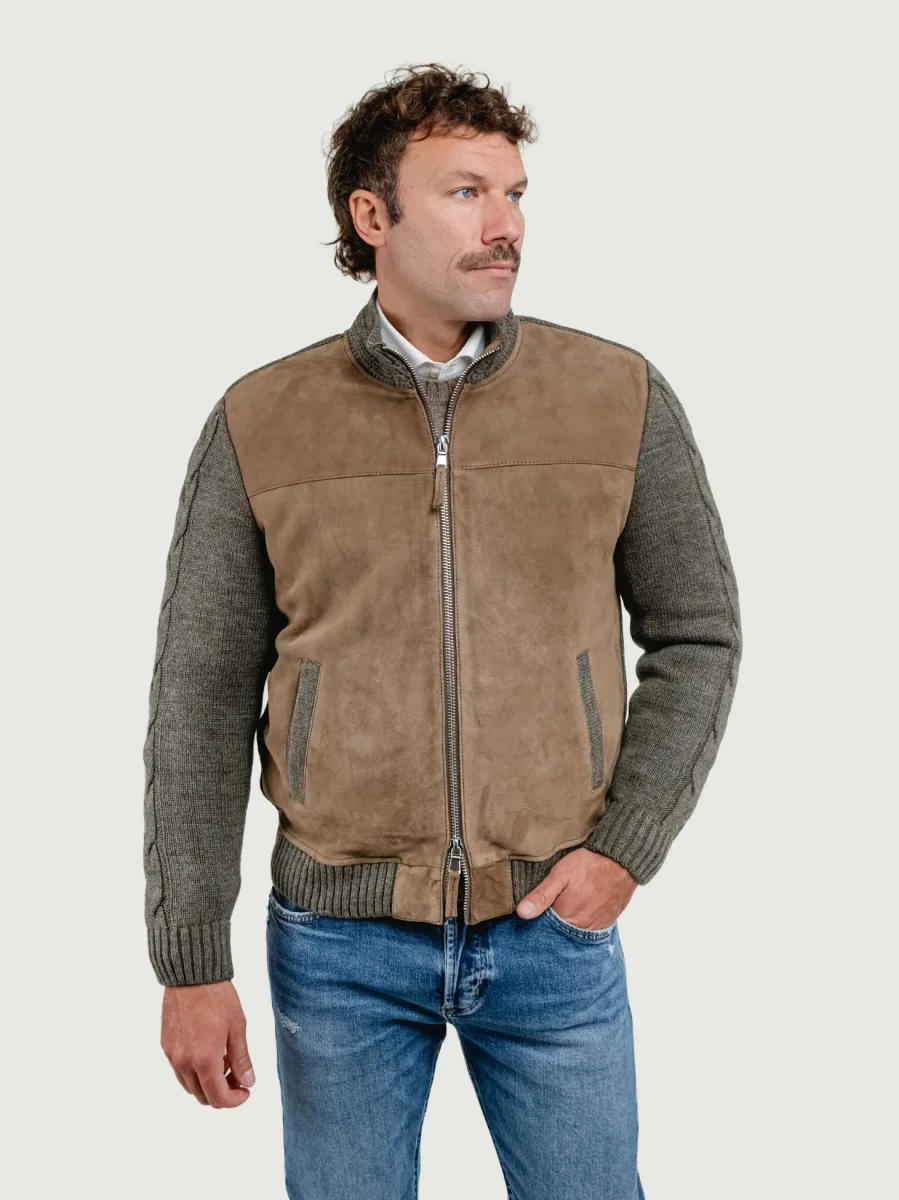 GIUBBOTTO THAMES KNIT IN CAMOSCIO E MAGLIA BEIGE VERDE