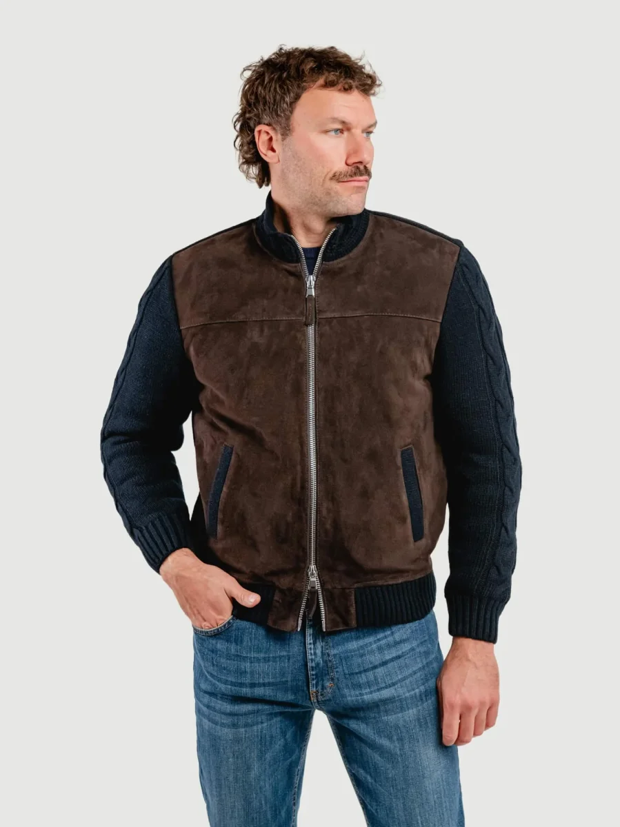 GIUBBOTTO THAMES KNIT IN CAMOSCIO E MAGLIA BLU MARRONE