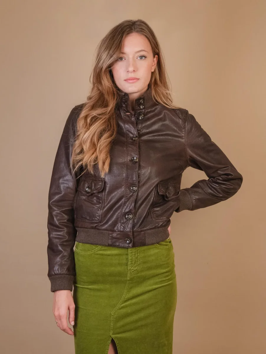 GIUBBOTTO CON CHIUSURA A BOTTONI IN PELLE MARRONE