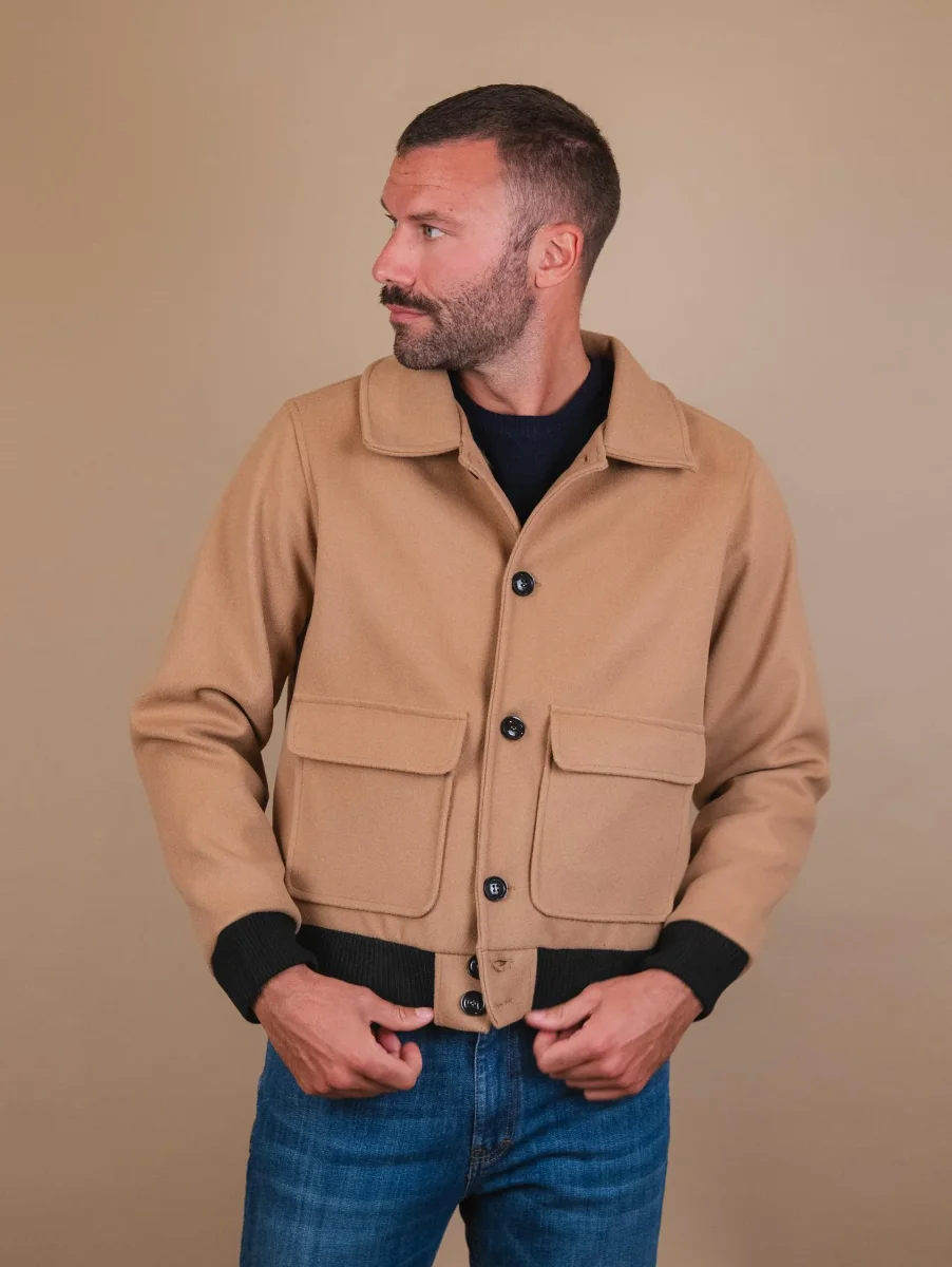 GIACCA CON PROFILI A CONTRASTO IN TESSUTO CAMMELLO