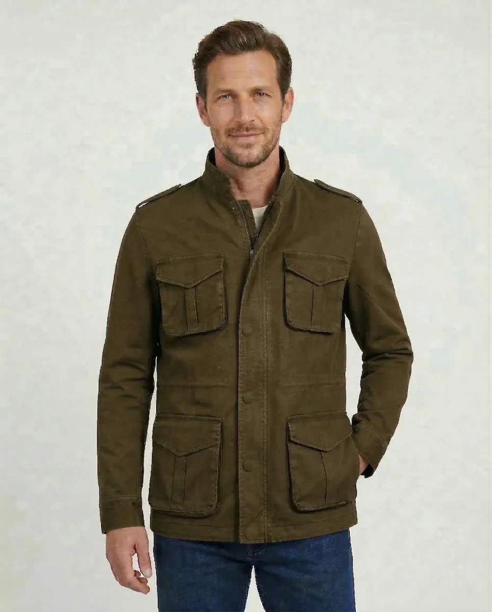 FIELD JACKET IN COTONE CON IMBOTTITURA SEPARABILE FANGO