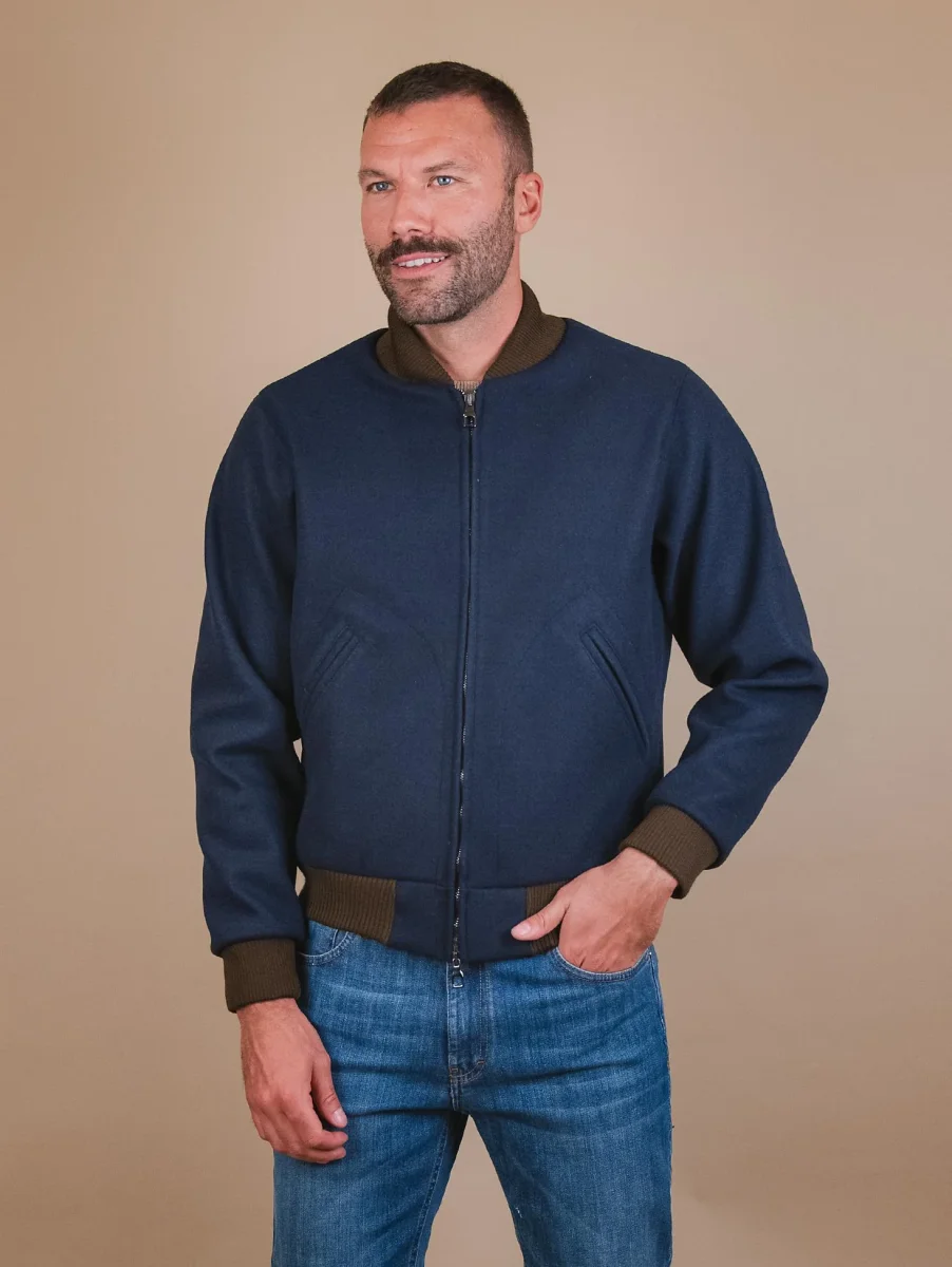 BOMBER CON PROFILI A CONTRASTO IN TESSUTO BLU