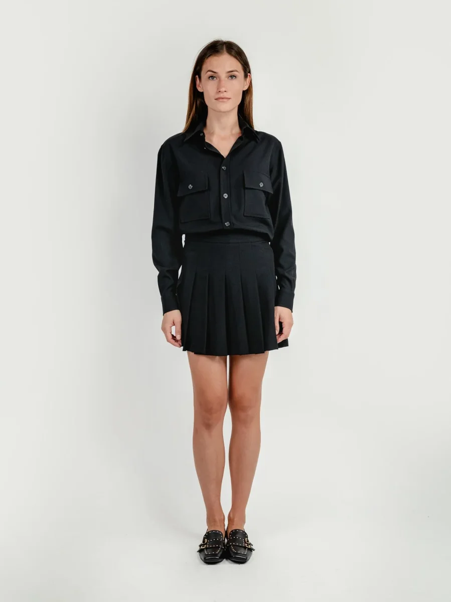 MINIGONNA CON PIEGHE E TASCHE NERA