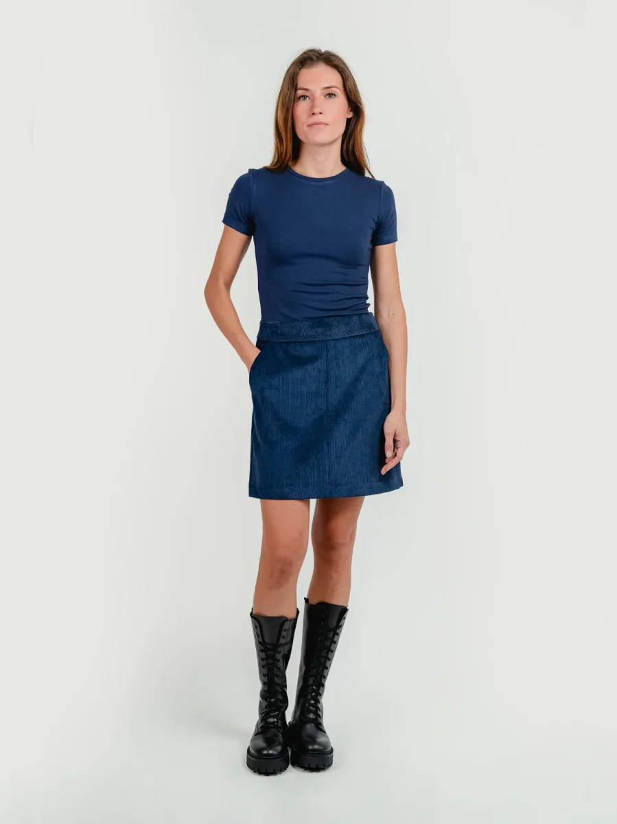 MINIGONNA IN VELLUTO A COSTE AZZURRO