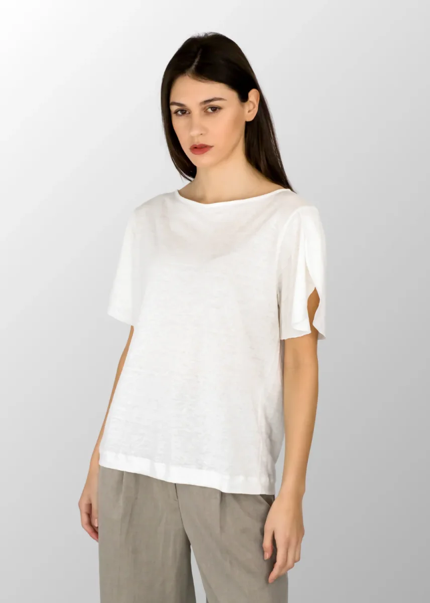 Maglia manica corta Giusy con spacchi laterali in Puro Lino