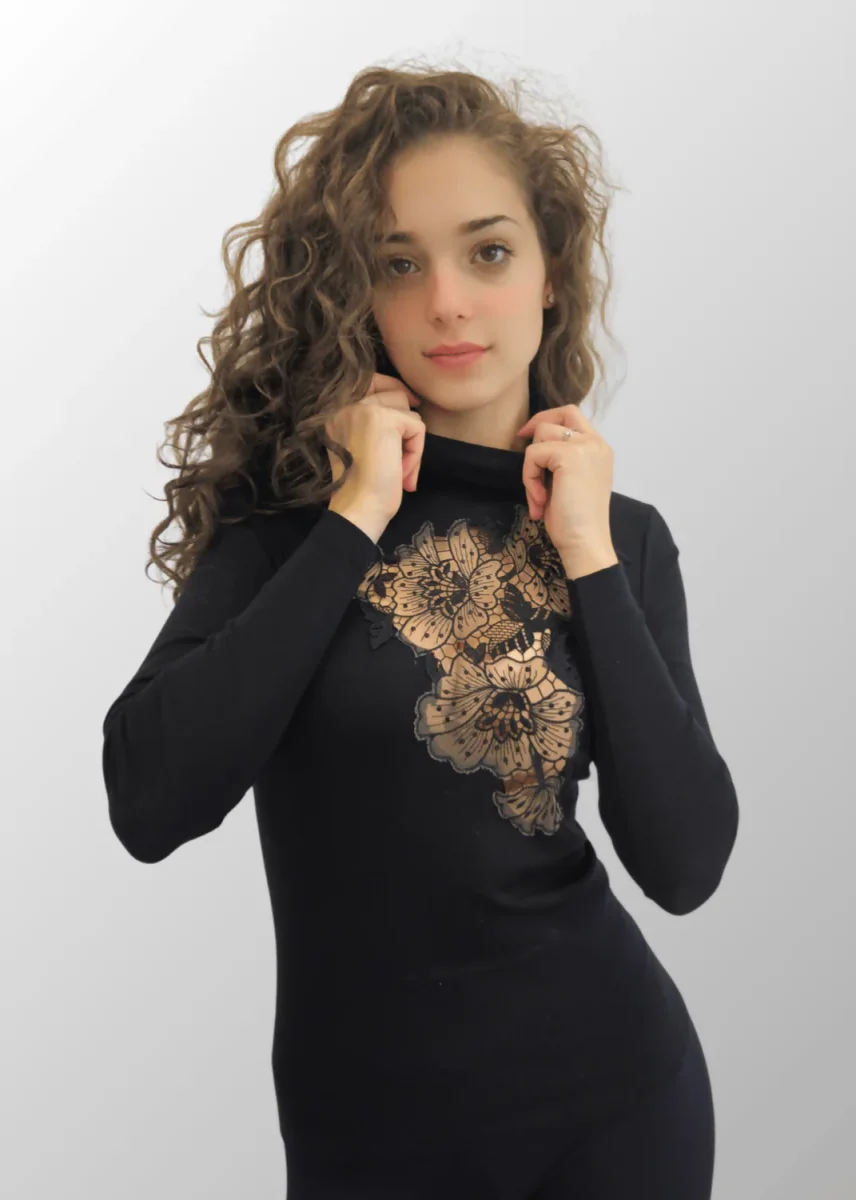 Maglia con lupetto e ricamo floreale Selena in Lana Seta