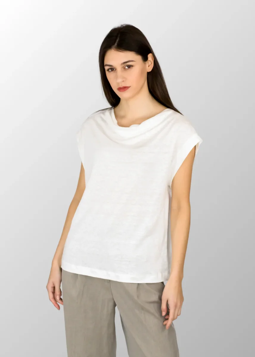 Maglia manica corta Martina con scollo a cascata in Puro Lino