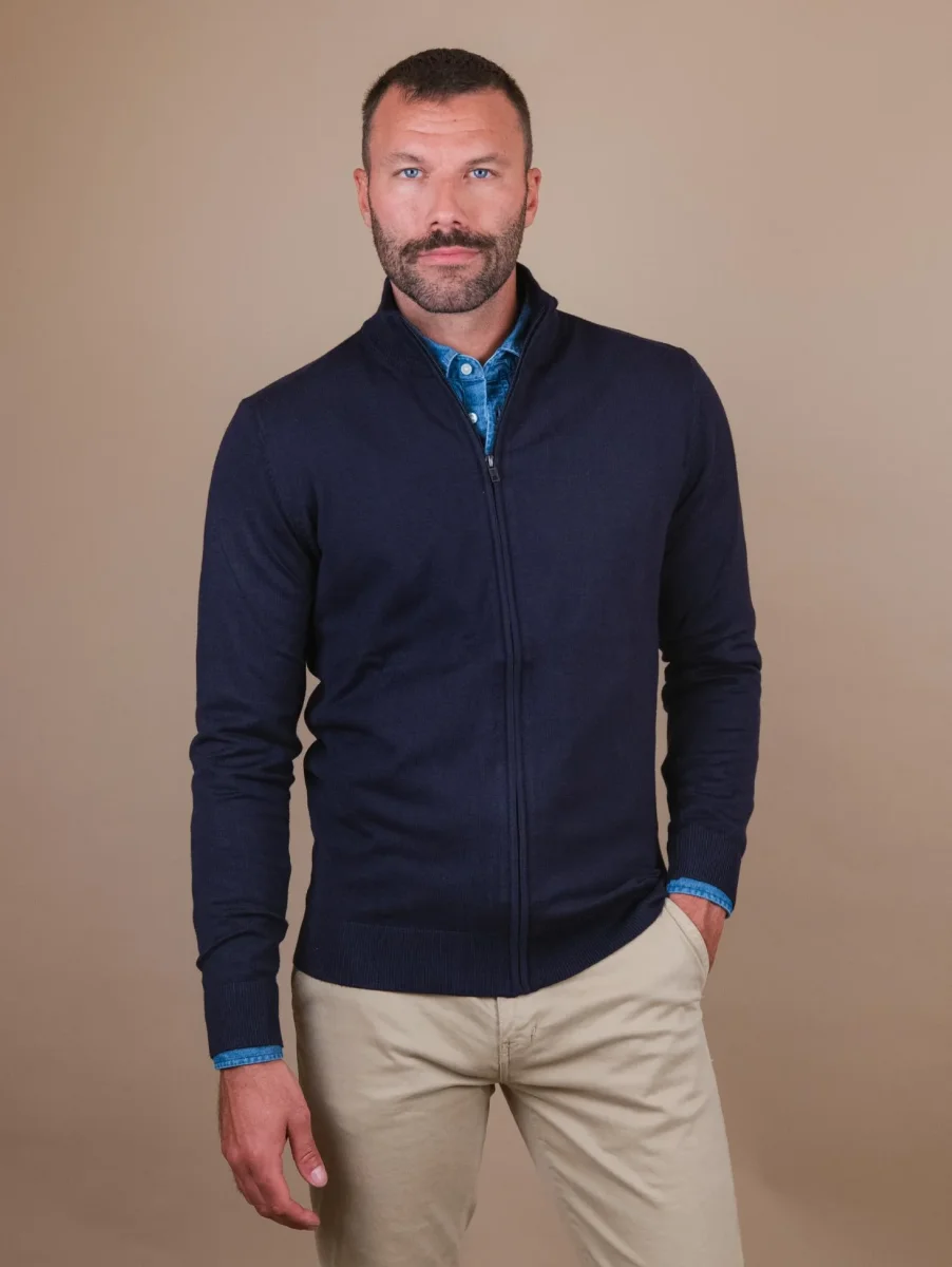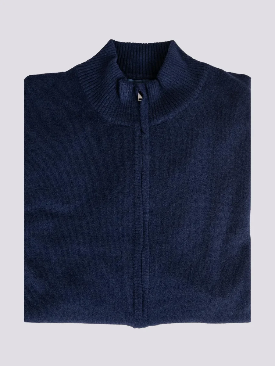 CARDIGAN BLU CON ZIP IN LANA MISTO CASHMERE