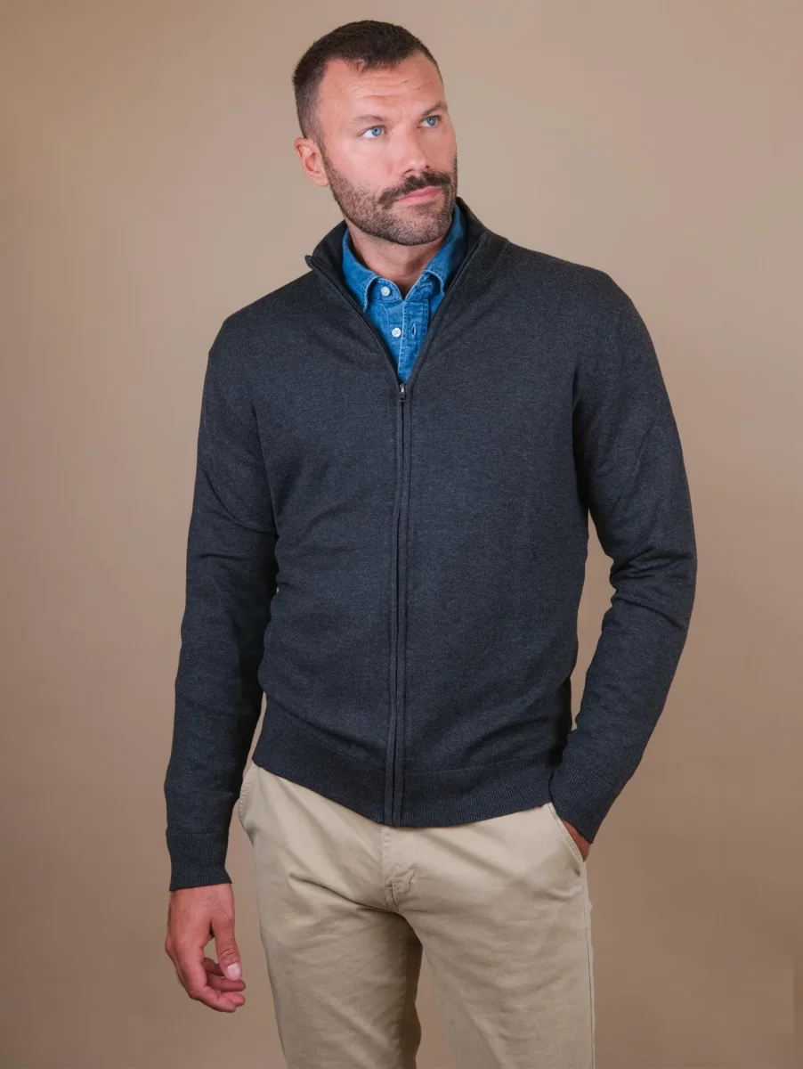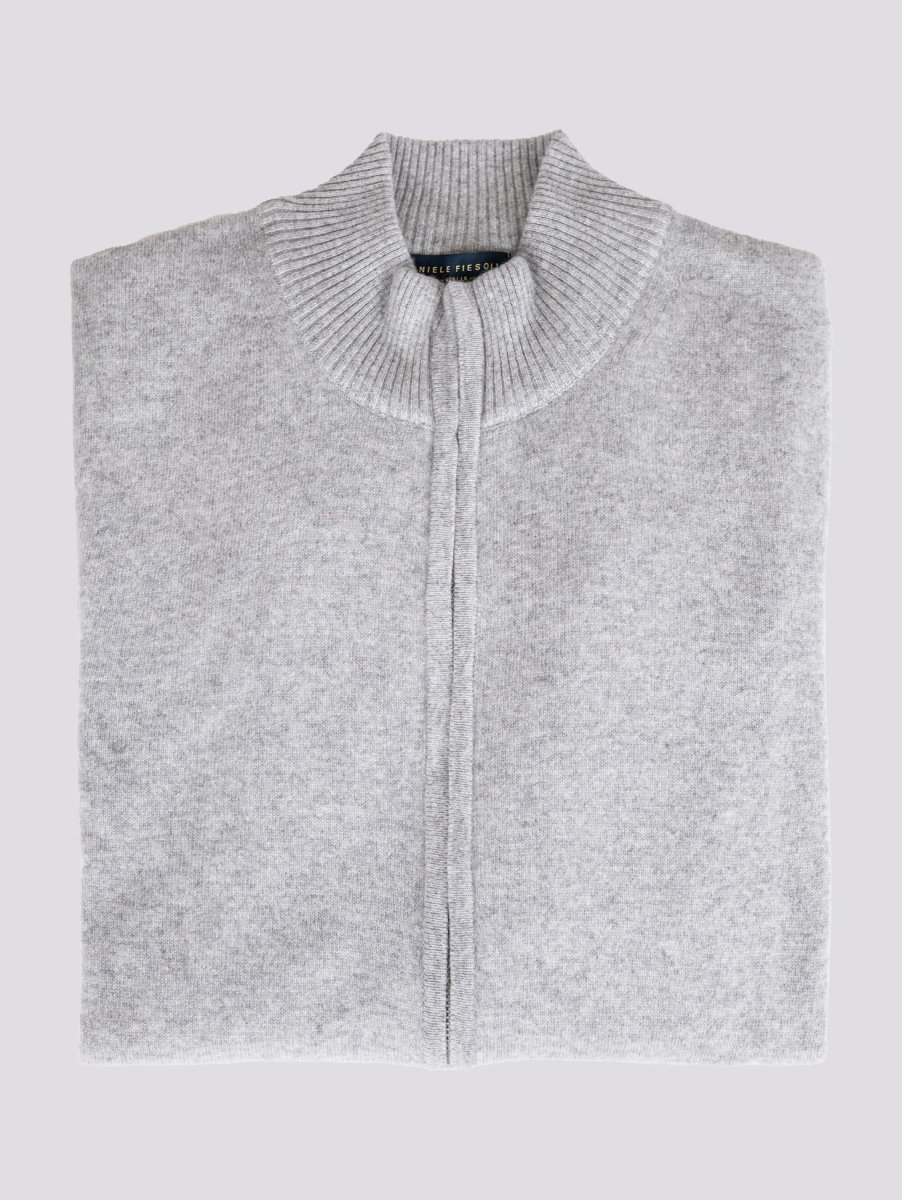 CARDIGAN GRIGIO CON ZIP IN LANA MISTO CASHMERE