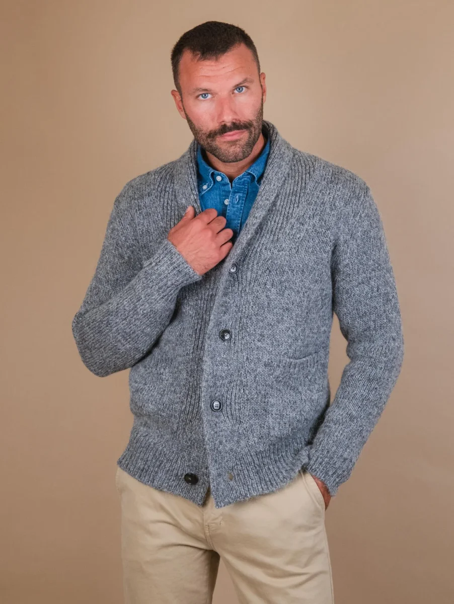 Cardigan grigio in misto lana con collo a scialle