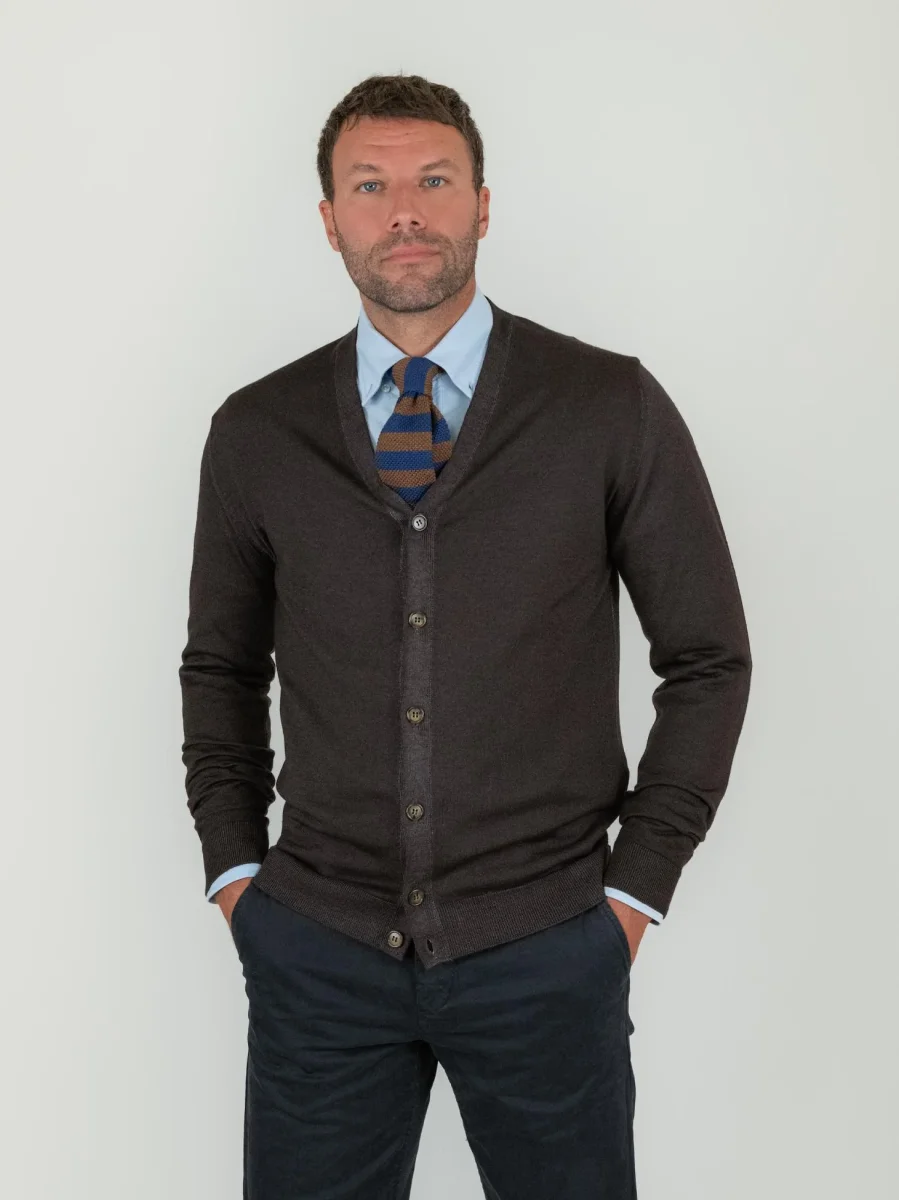 CARDIGAN IN LANA MERINO E CASHMERE TESTA MORO