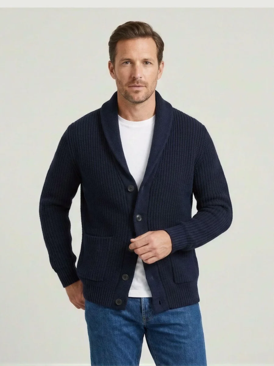 Cardigan collo sciallato blu