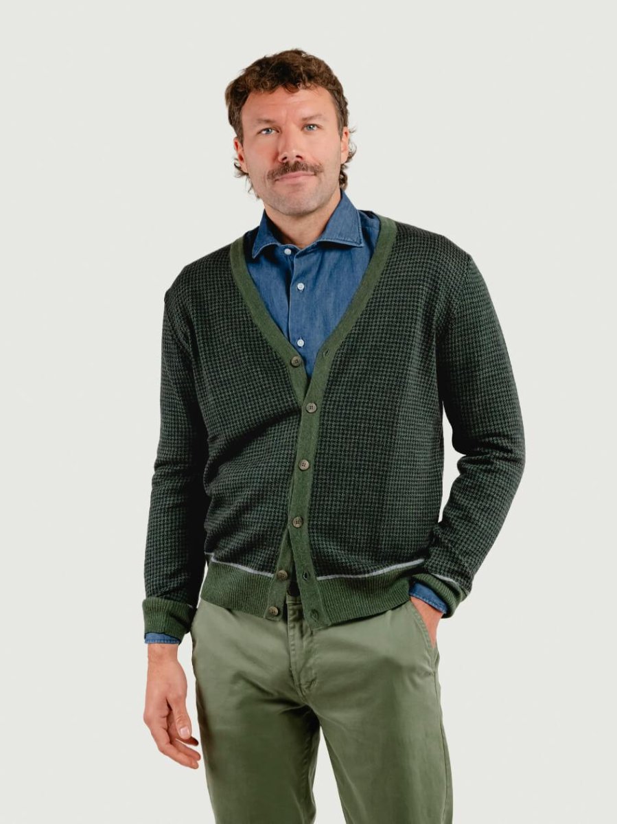 CARDIGAN CON TRAMA PIED DE POULE VERDE BOSCO