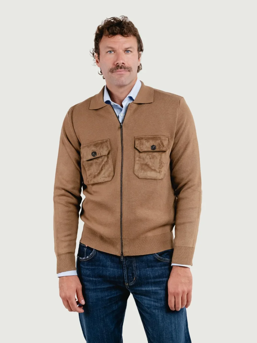 GIACCA IN MAGLIA CON INSERTI IN ALCANTARA CAMMELLO