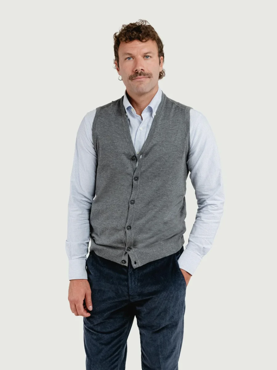GILET SMANICATO GRIGIO IN LANA MERINO