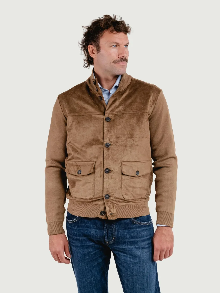 GIACCA IN MAGLIA E ALCANTARA TESTA MORO