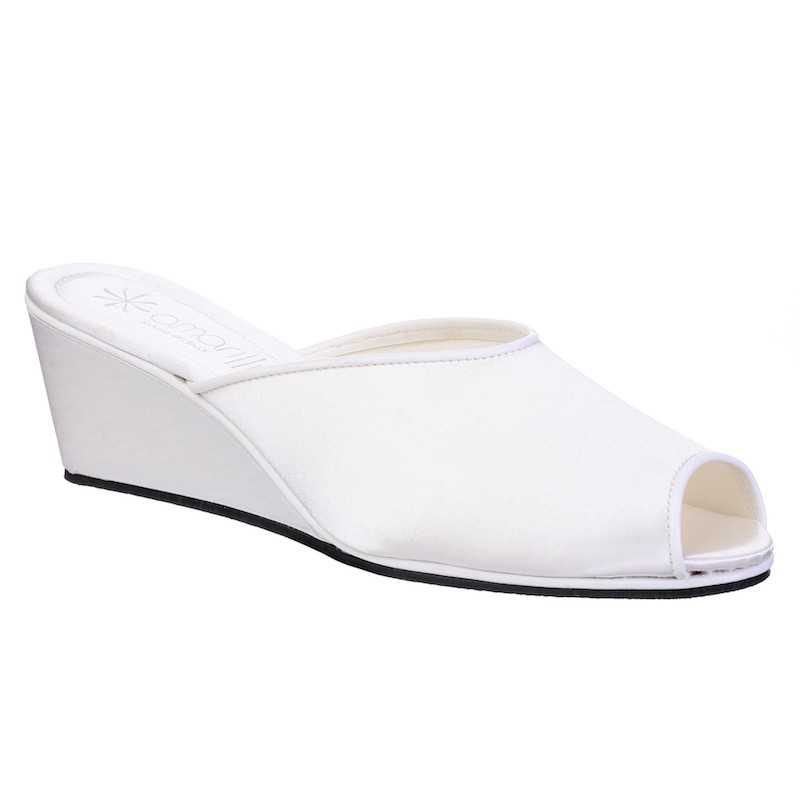 Ciabatte da sposa, aperte, in Raso Bianco fatte in Italia.
