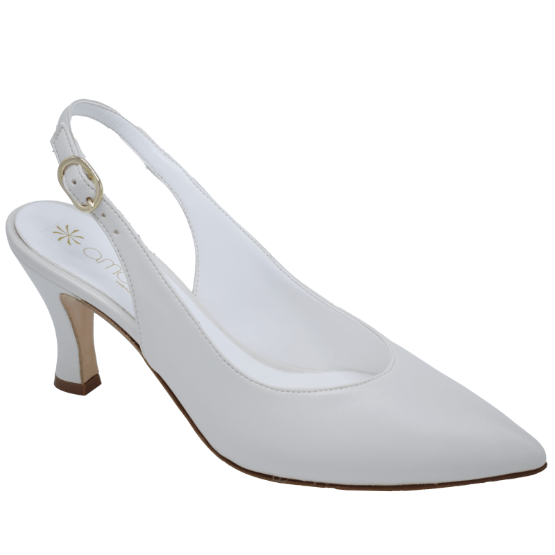 Scarpe da Sposa in pelle nappa con tacco alto 8 cm, chiuse, in pelle nappa Bianco o Perlato, fatte in Italia.