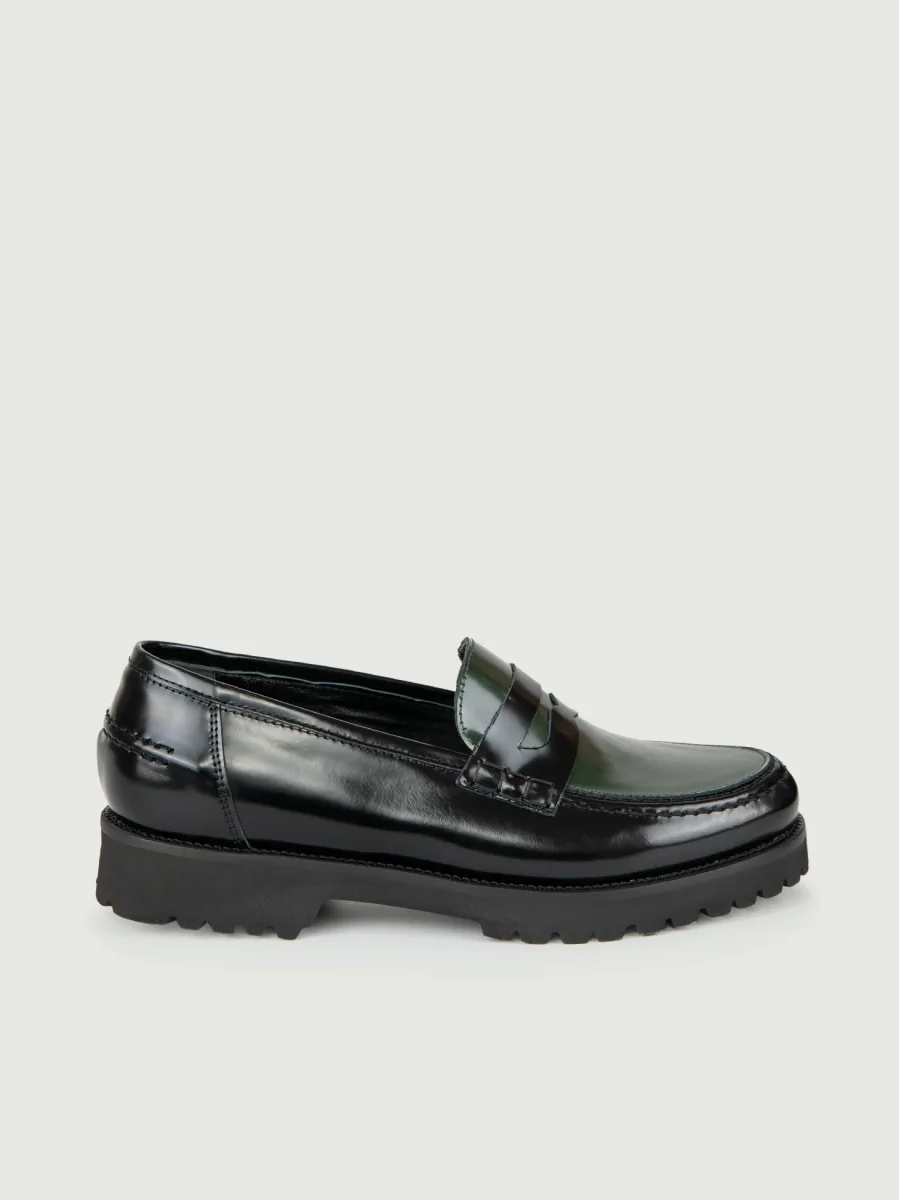 MOCASSINO PENNY IN PELLE NERA E VERDE
