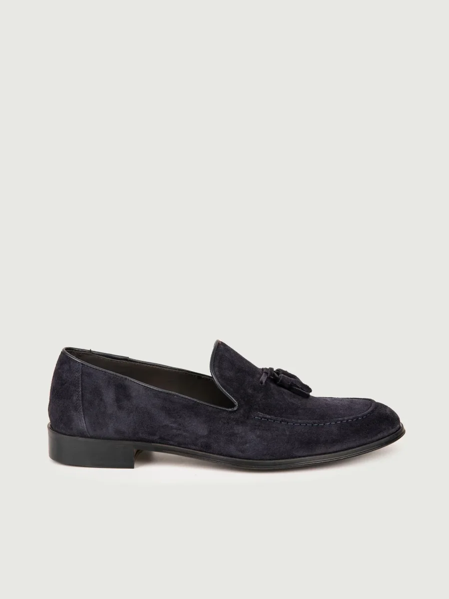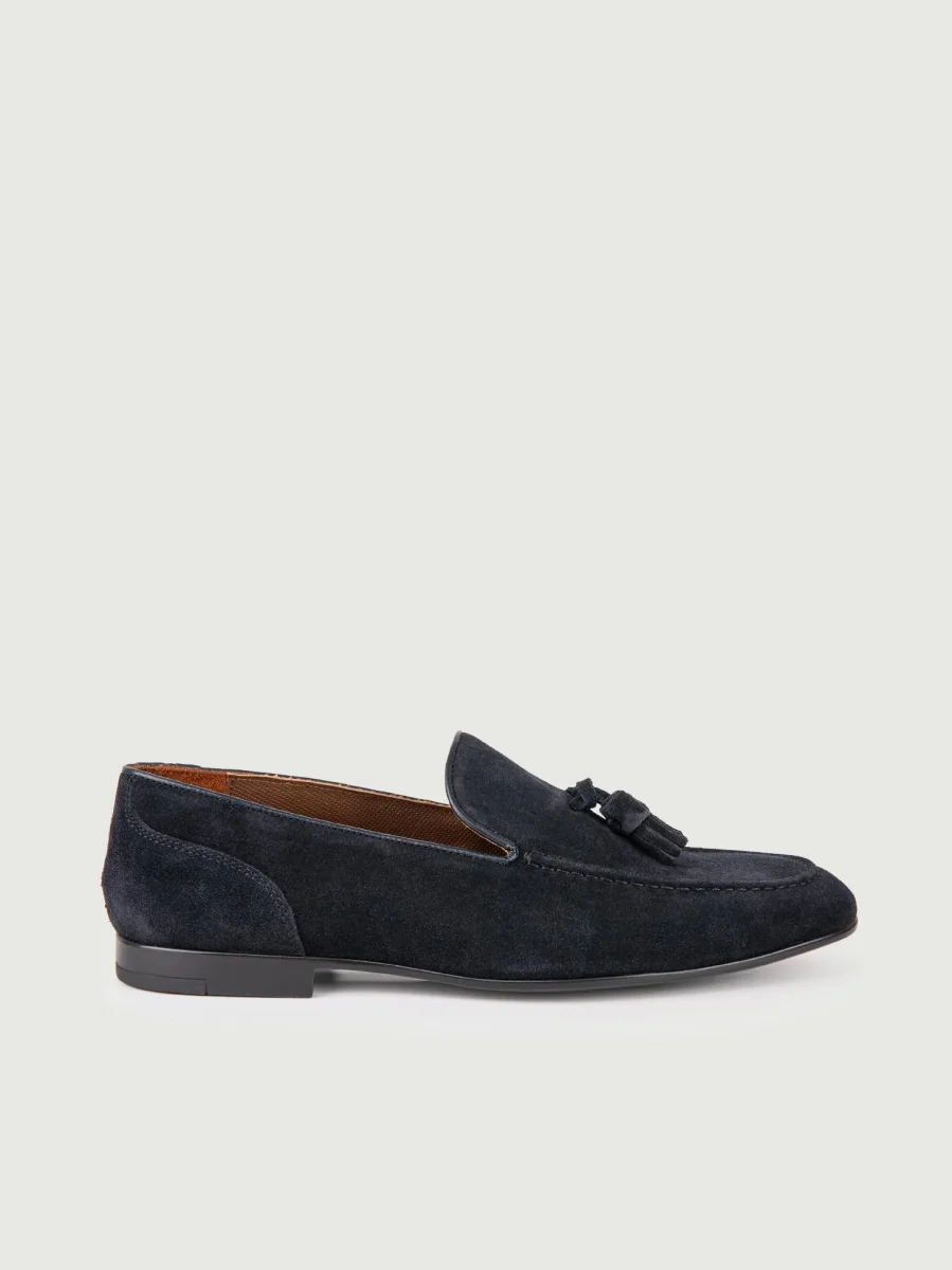MOCASSINO SCAMOSCIATO BLU CON NAPPINE