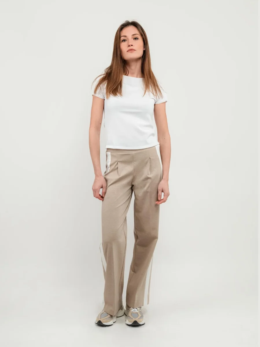 PANTALONE A PALAZZO BEIGE CON INSERTI LATERALI PANNA